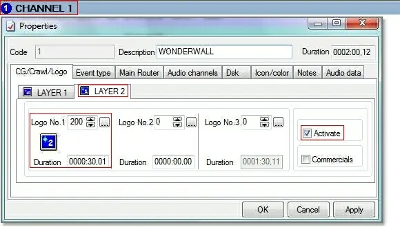 According to the current example, the Logo No.100 (and eventually also the Logo No. 200) of the Layer1 will be maintained since it exists in the target station: