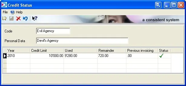 The Credit Facilities form allows to monitor the status of all credit agreements set for a certain contact, thus allowing to compare expected amounts against used amounts:
