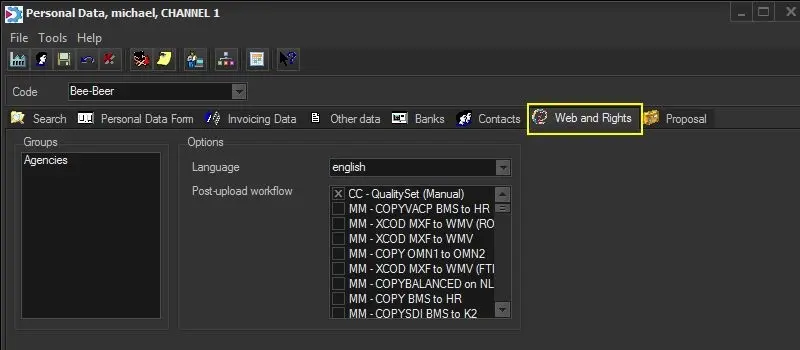 Post-upload workflow - Indicate the T-workflow(s) to be launched each time the current user upload a file using EtereWeb. In case more than one T-workflow is selected, the web-user will be able (depending on its rights) to select the one to be launched after the upload.