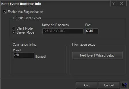 •Server Mode: In server mode, Etere STMan will listen (at the given port) for incoming requests for accessing the Net Event Runtime Information that will be provided in XML format.