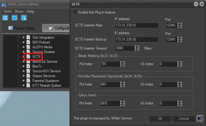 NB: SCTE104 has been implemented for Harmonic and Xvp-3901