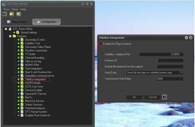 Launch Etere STMan, click on “TitleBox Integration” to open the dialog box. You would need to check <Enable this plug-in feature> to begin the configuration.