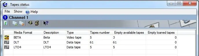 Tape situation - Shows the current situation of each tape media format managed by the system (i.e. tapes number, empty available number, empty loaned number):