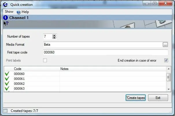 Quick creation - Create a series of new blank tapes just by entering the number of tapes to be created, their media format and their single codes: