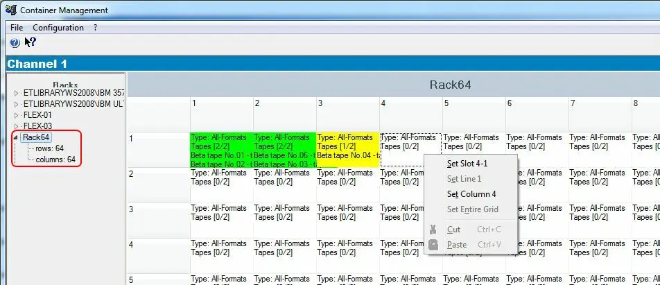 In order to remove either a Library or a Rack from the list just make right-click on it and select the "Delete Rack" option, the selected rack will be deleted from the system but all its contained tapes will remain the system.