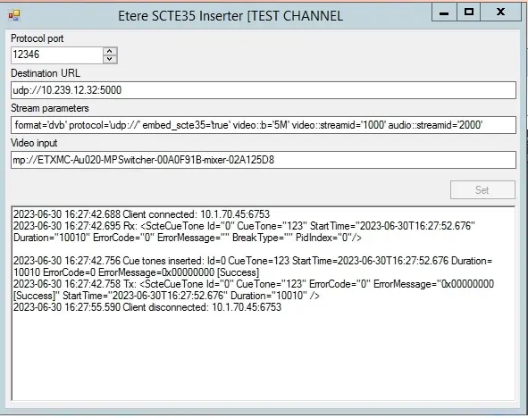 - Protocol Port: udp communication port with STman. Put the same port as in the Stman SCTE cue tone plugin