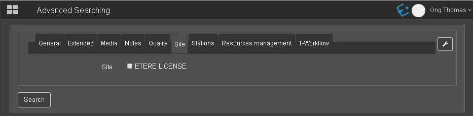 In the Site tab, indicate whether to include the Etere site during the search.