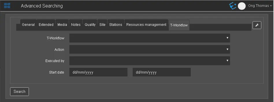 Start date: Select the date range to search the T-workflow started within the date range, or select the same date to search T-workflow launched on the specified day.