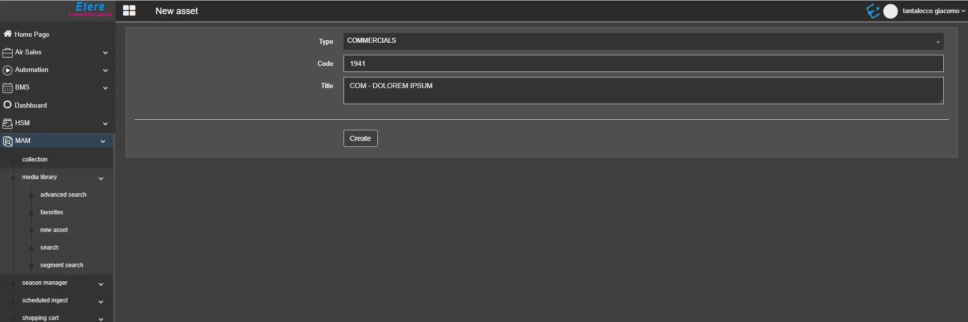 Click<Create>to confirm the asset creation.
