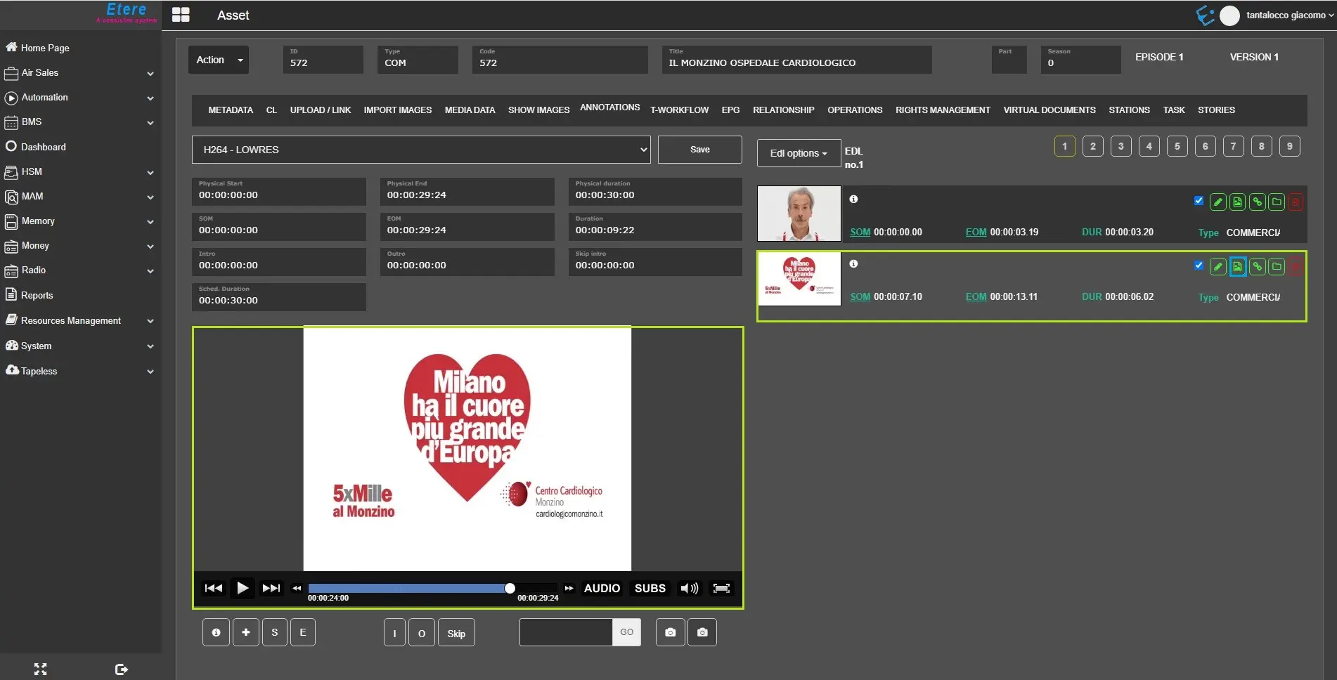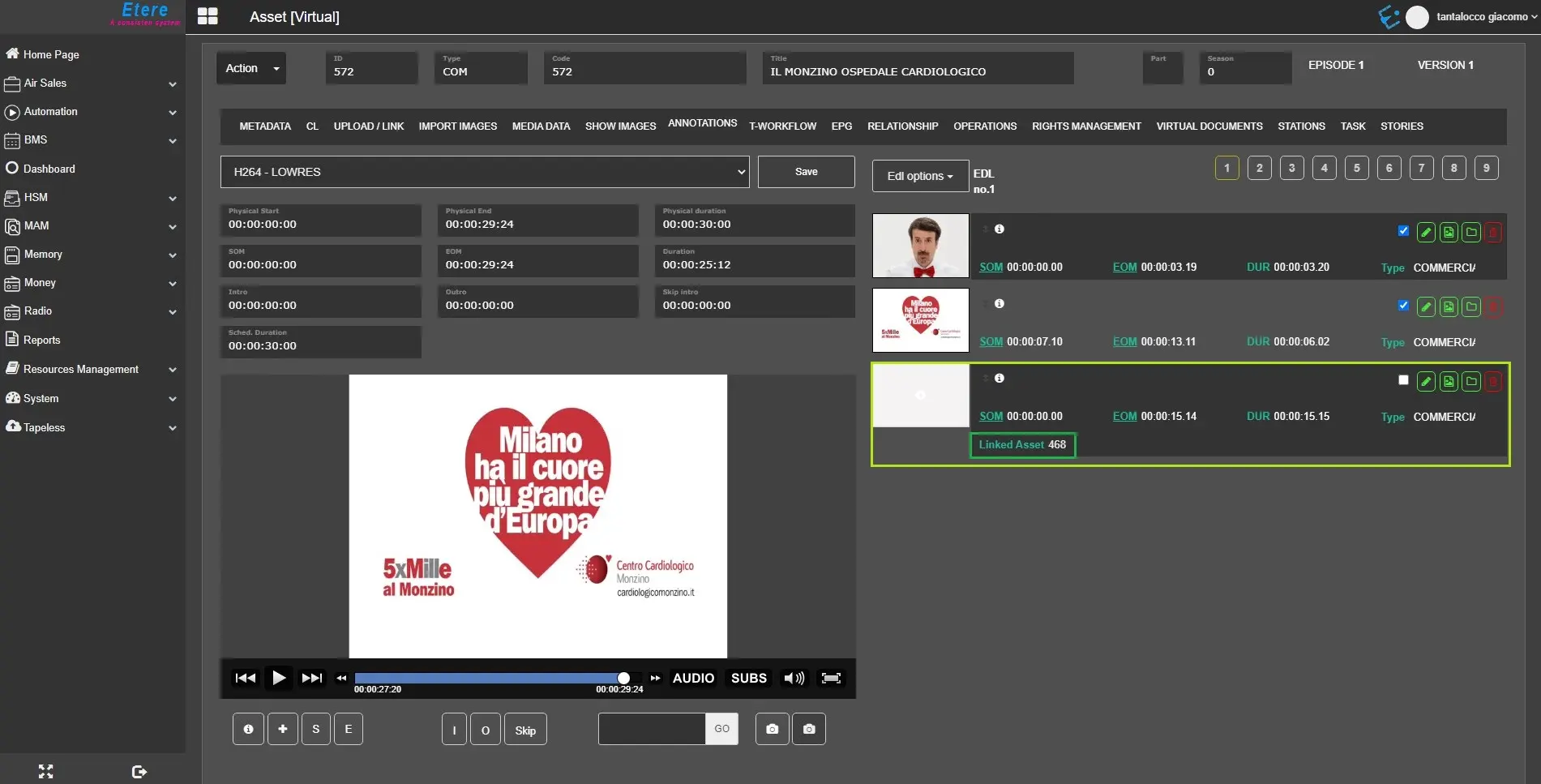 Since the Etere330332_BETA version another EDL level has been added called AS -> Advanced Story.