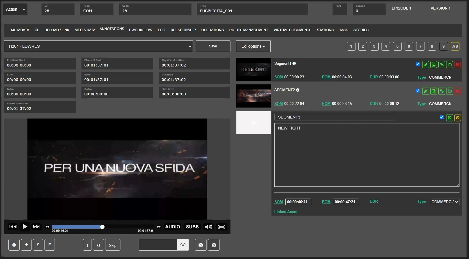 WARNING: In EDL, the segment description is displayed in white. You can edit the segment's colour with the customised colour scheme during the EtereWeb setup;