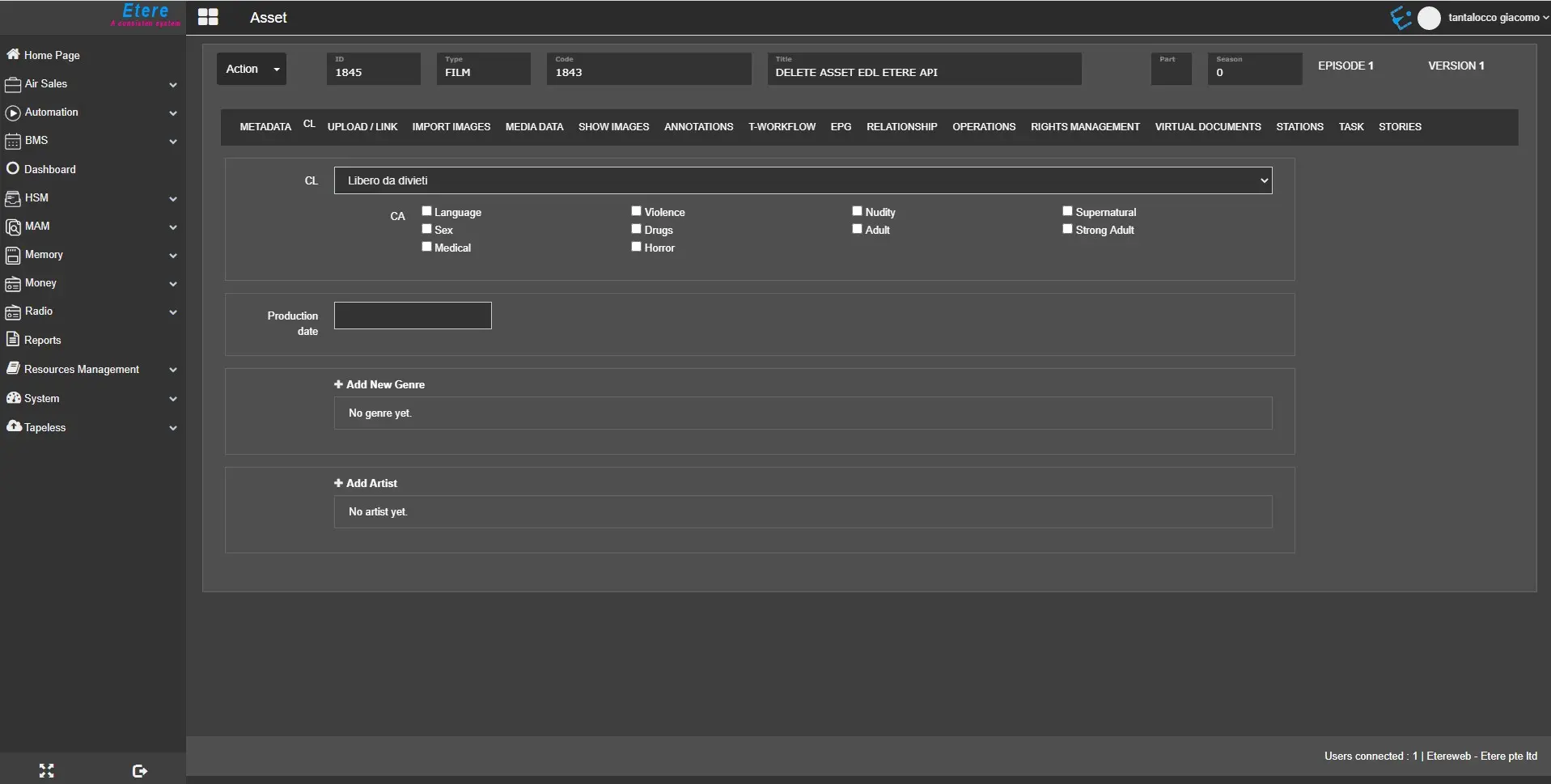 Moreover, you can modify the artist if the asset is a single asset form. If the asset is part of the season, it can be changed only through Season Manager.