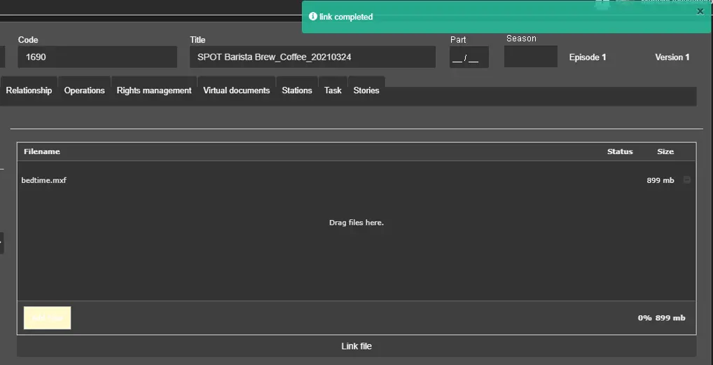 WARNING:The "Upload / Link" functions coexist in EtereWeb. Unlike desktop applications, where different workflows are configured for dedicated tasks, both features use the same default workflow to trigger the request.