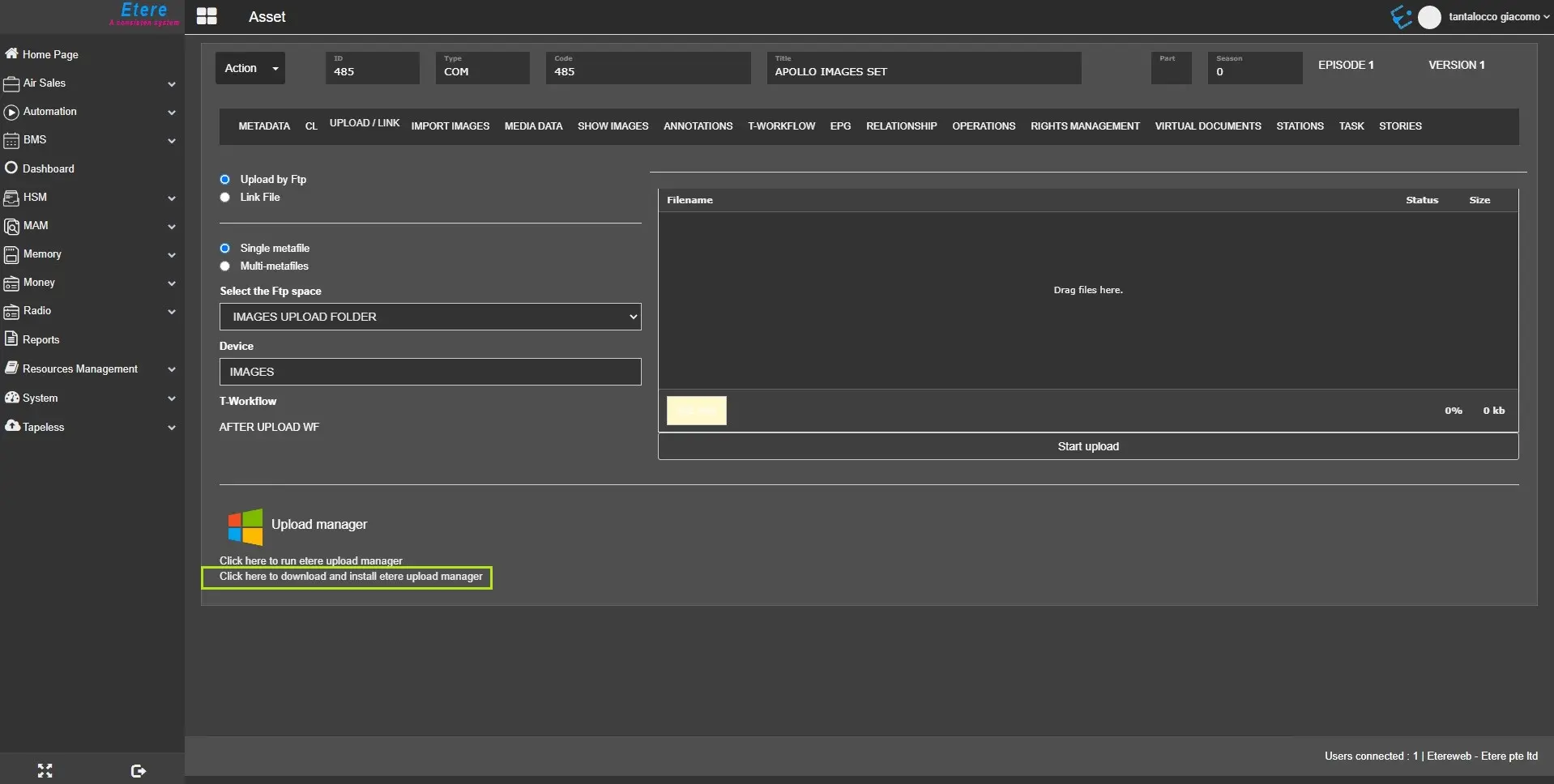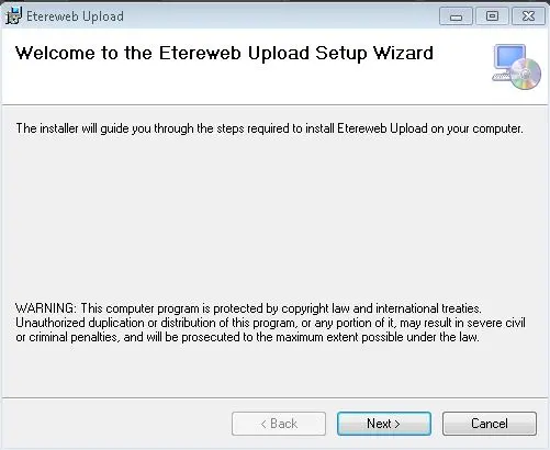 First, click on “Click here to download and install Etere Upload Manager” to download the installer.