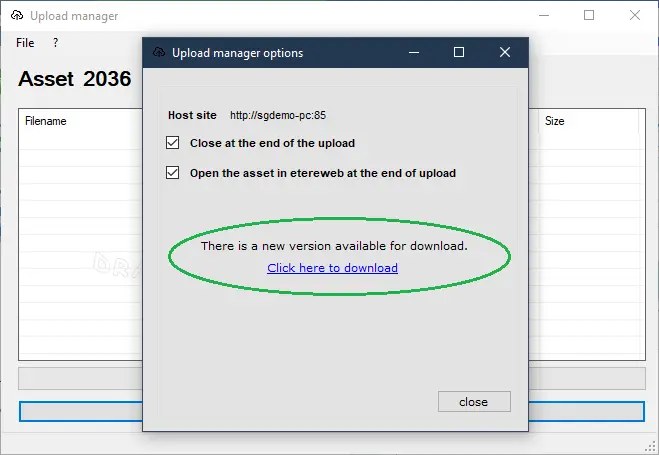 WARNING: If the Upload Manager remains active although the file is uploaded successfully, you can automatically add a registry key to close Upload Manager at the end of the file upload.
