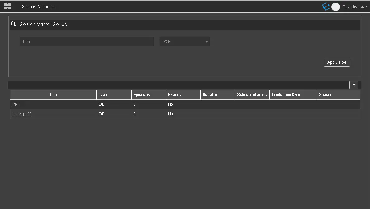 In Series, you can search for existing Seasons or create a new season.