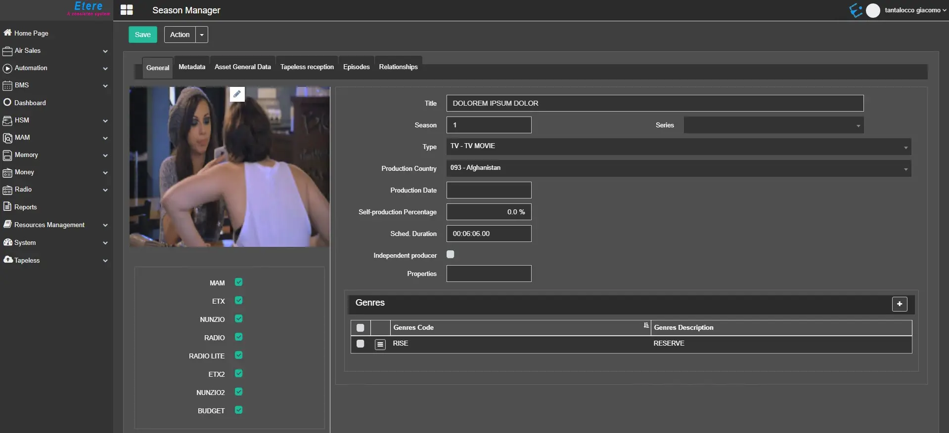 Type: It displays the asset type of the season episode, which the type must be defined in Configuration > Settings > Type Editor > Type;