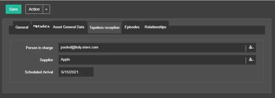 The Tapeless Reception tab allows you to specify who will provide the video files related to the season. It will upload them through the dedicated section of the MAM web module.