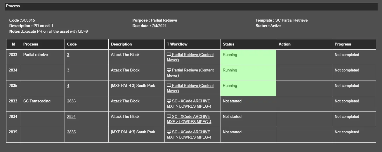 - Log: The Log icon captures the operations performed by the whole process, e.g. the T-workflows launched, the assets automatically created, etc.