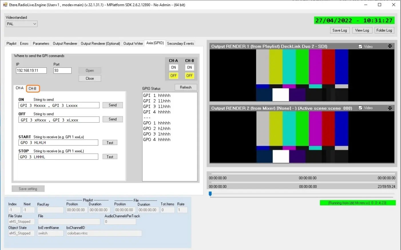 In the following images you can see how Etere was configured with an Axia Liveware system: