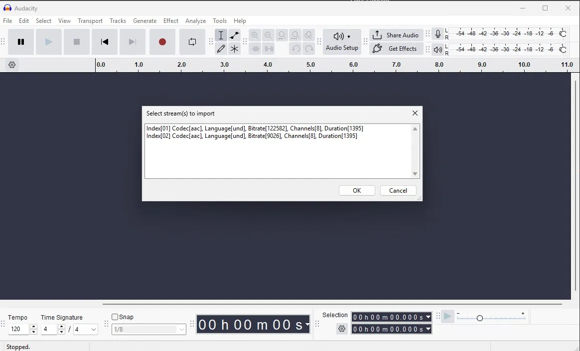 notes: only one trace can be loaded into Audacity and, in case of more traces, a popup window will appear where you can select the trace you want to load in Audacity