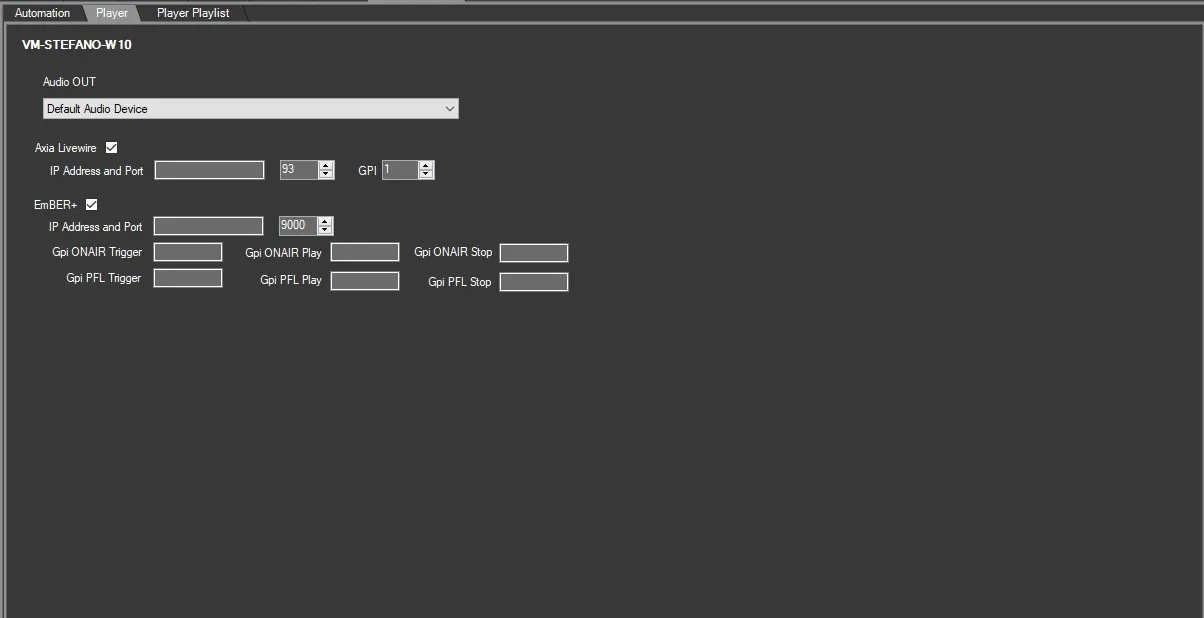 This tab allows to set the local output audio device for the Radio Playout Player.