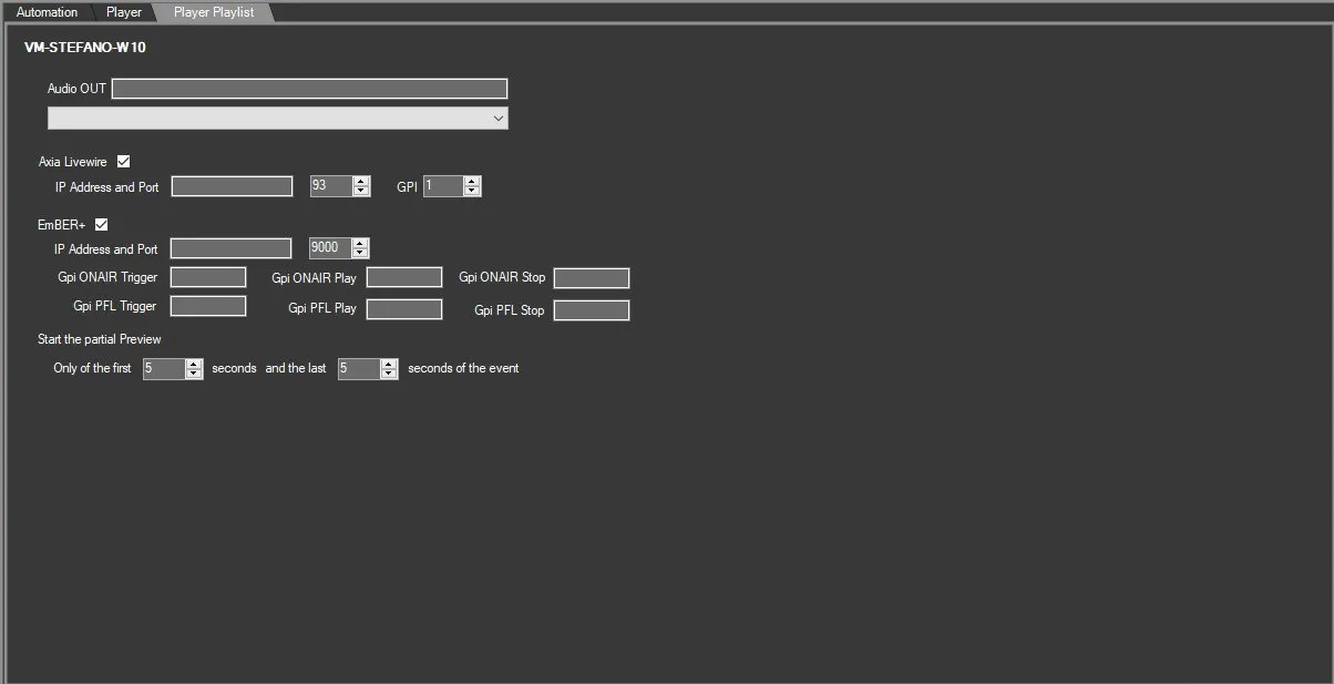 As the previous one, this tab allow to set the local output audio device for the Radio Playout Player Playlist.