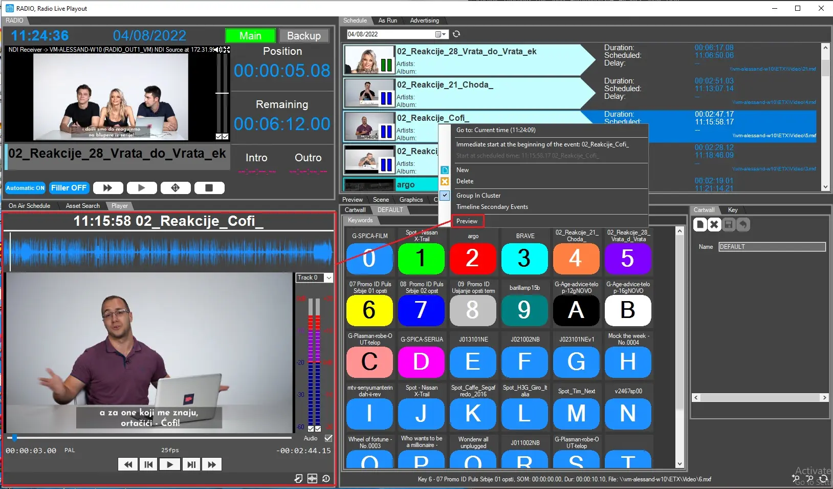 Etere Radio Live Playout, offers also the possibility to preview assets before they're broadcasted.
