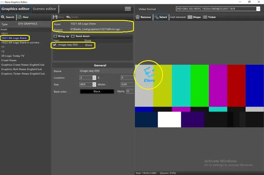 This chapter preview the existing graphics assets in Graphics Editor. For creating and editing of new graphics asset you can refer to ETX-G Graphics Editor chapter in ETX-G manual.