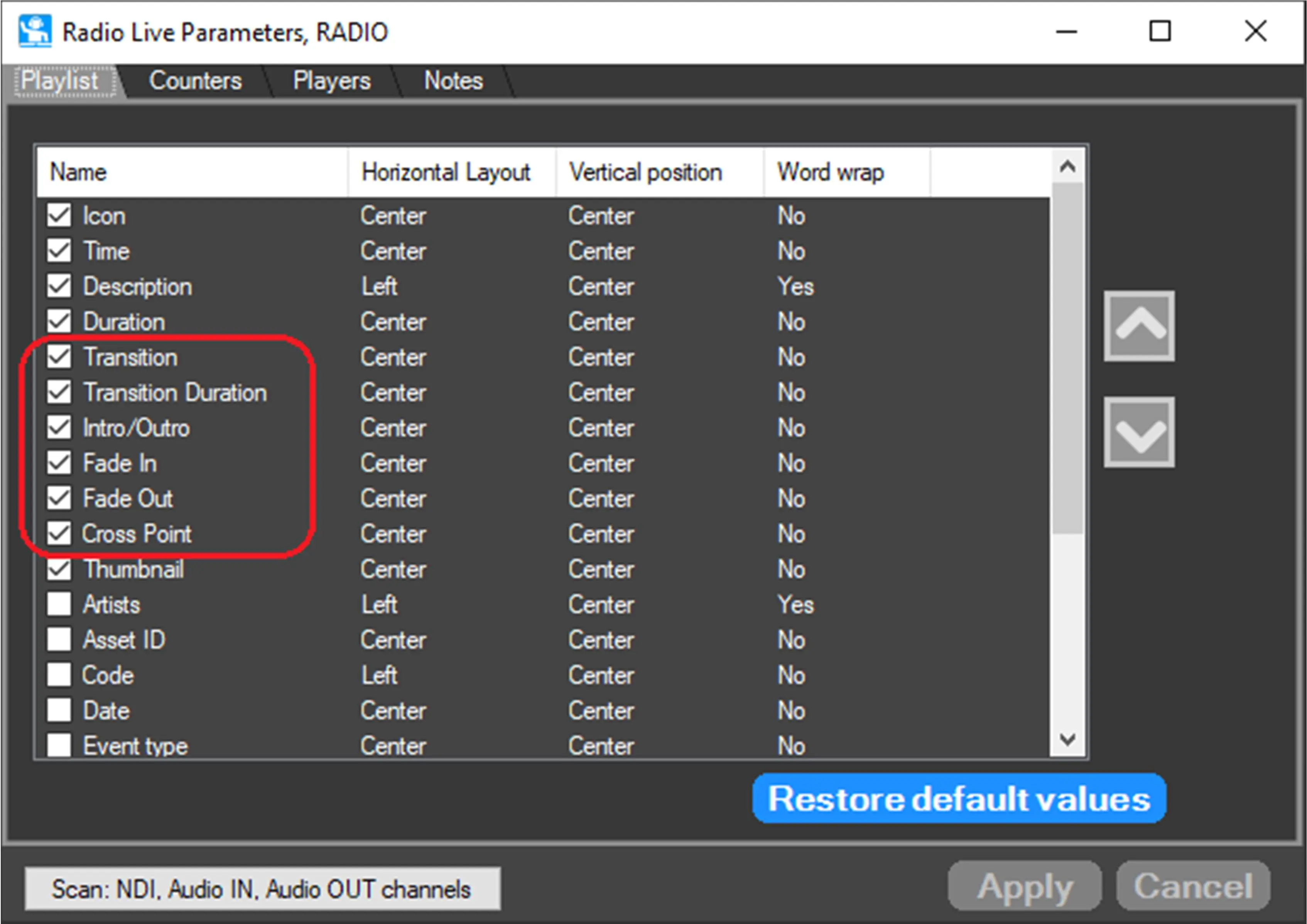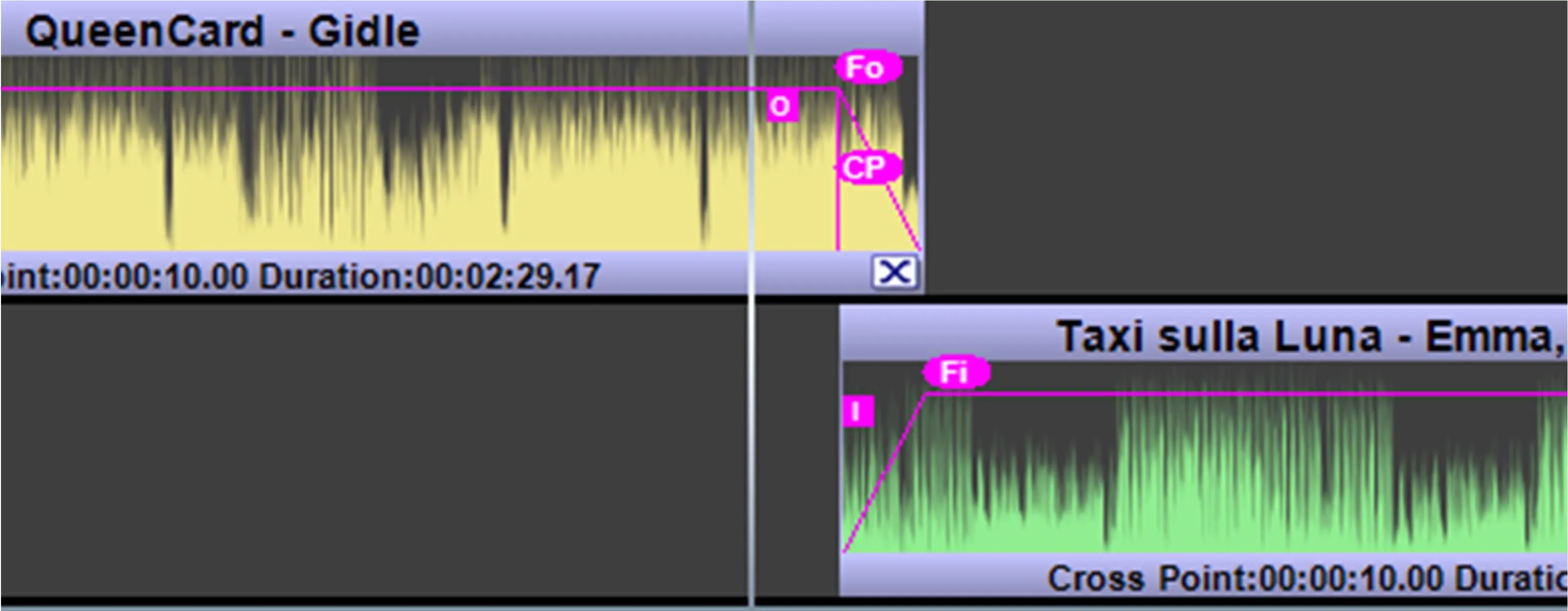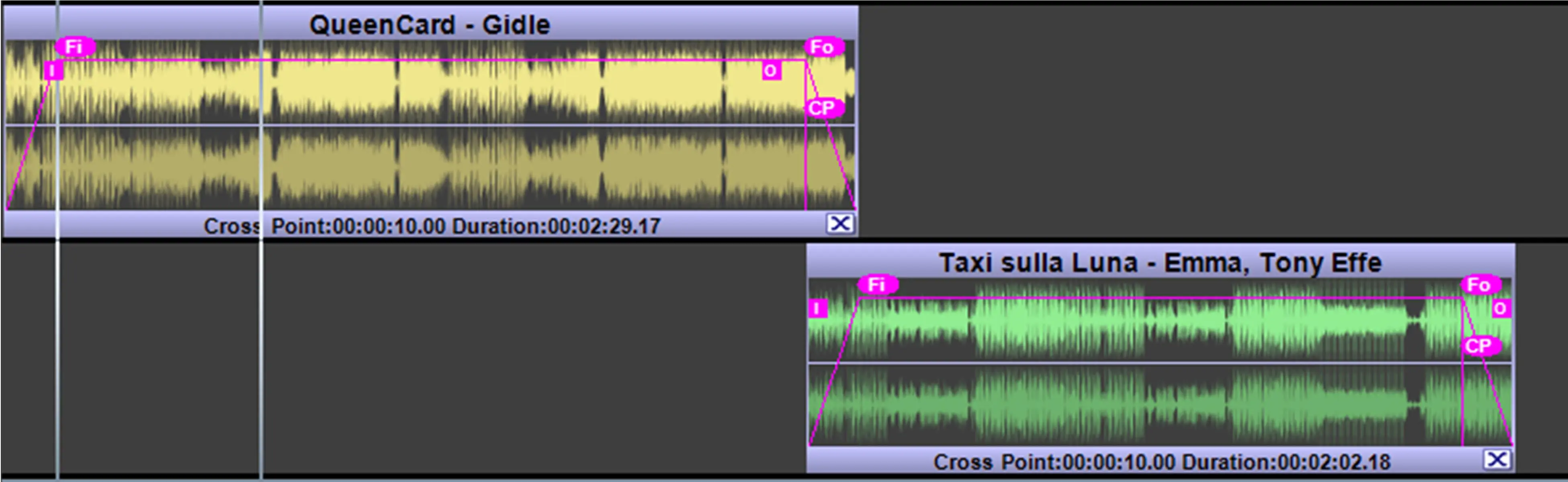 Radio Live Director allow to manage the transitions between audio files through the function Manage Fades.