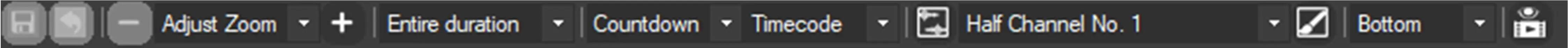 Timeline top and timeline bottom: This option allow to choose what to display at the top and the bottom of the timeline, or hide them. The toolbar contains 2 identical droplists: the one on the left controls the timeline top, the one on the right controls the timeline bottom.