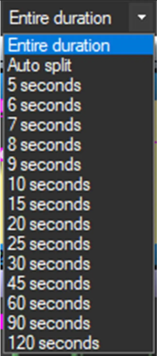 Segments: It is possible to split the events into two parts, so you only have the first and last part. “Auto split” chooses the minimum length necessary to display all the data of the events present in the timeline.