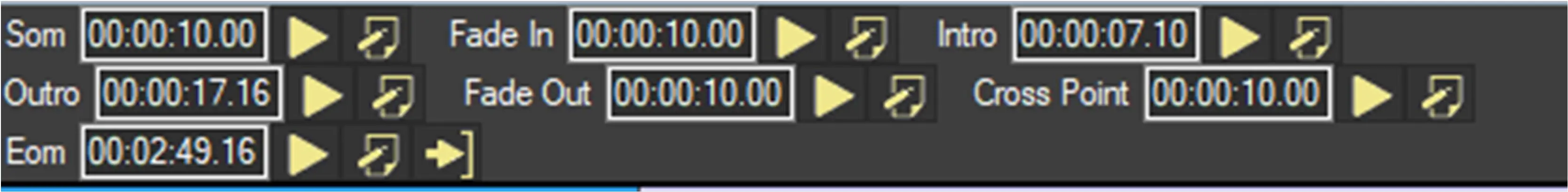 Fade Out (Fo icon): Set the start of the fade out