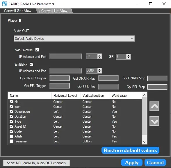 Radio Live Cartwall GUI