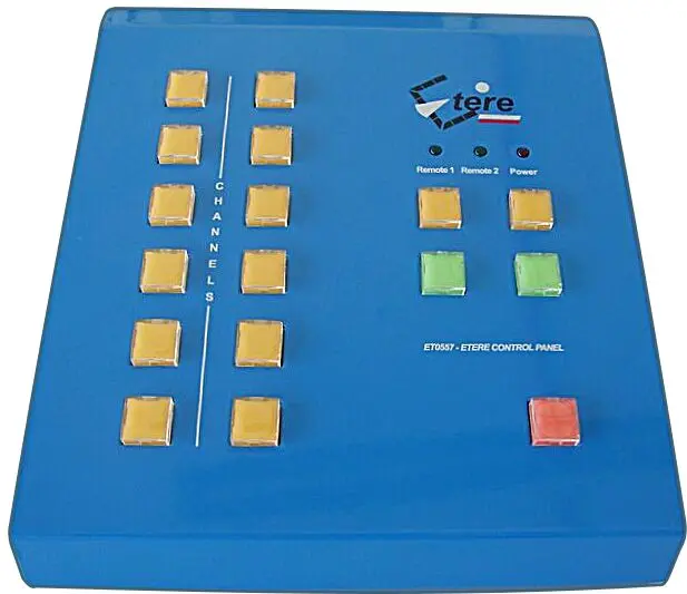 The twelve (6+6) buttons present in the left portion of the device are used for selecting the automation channels, these channels are configured in the Etere Control Panel. Please refer to the Mapping channels and commands chapter for further information on the association of channels and the meaning of buttons lights (e.g. blinking means connection error).