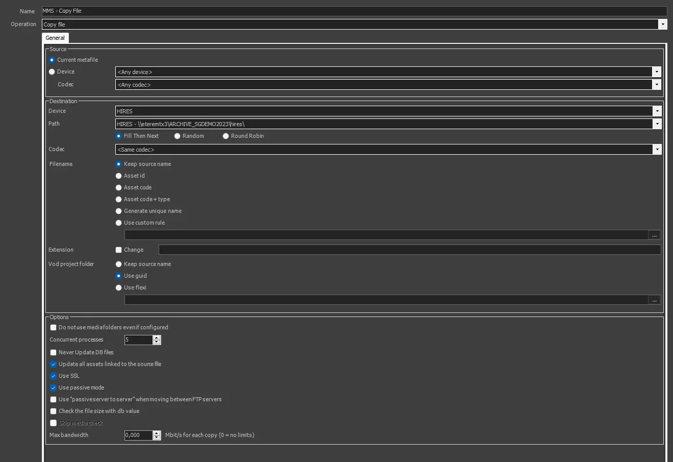 MMS - COPY FILE is the action used by ETERE system to copy files from source to destination device.