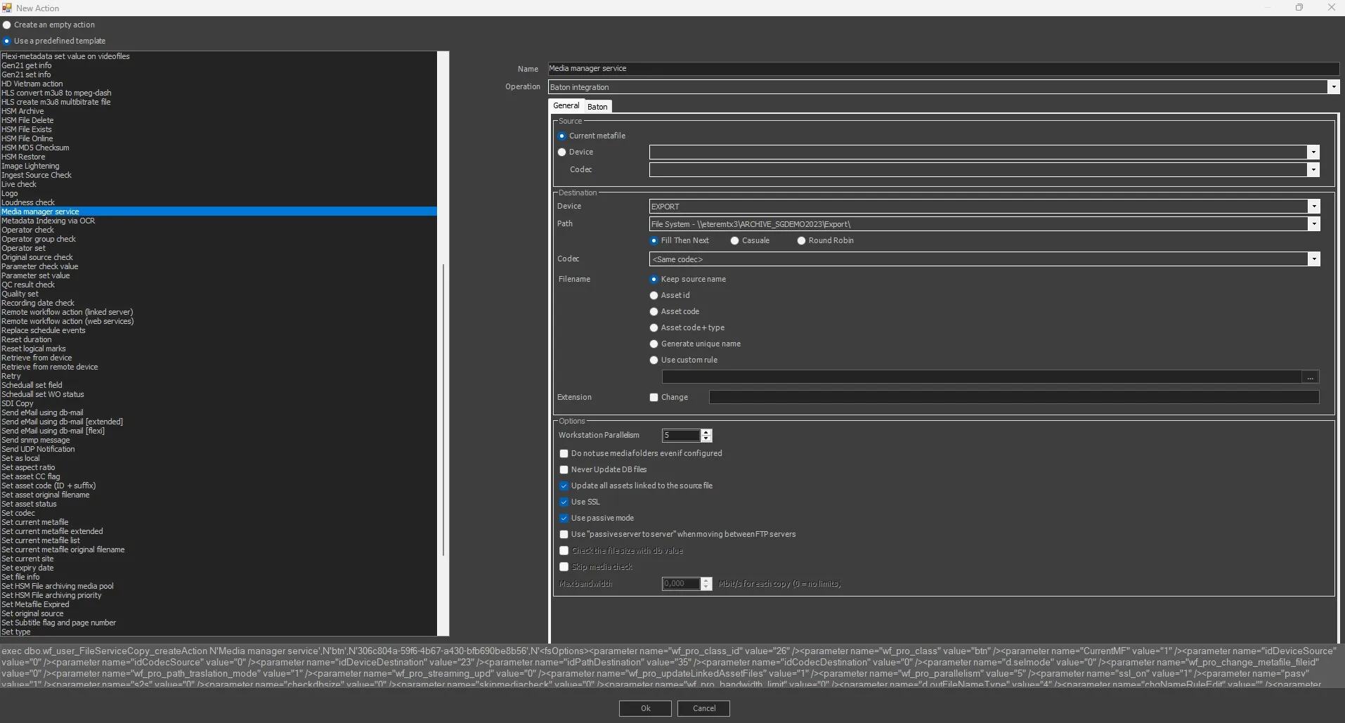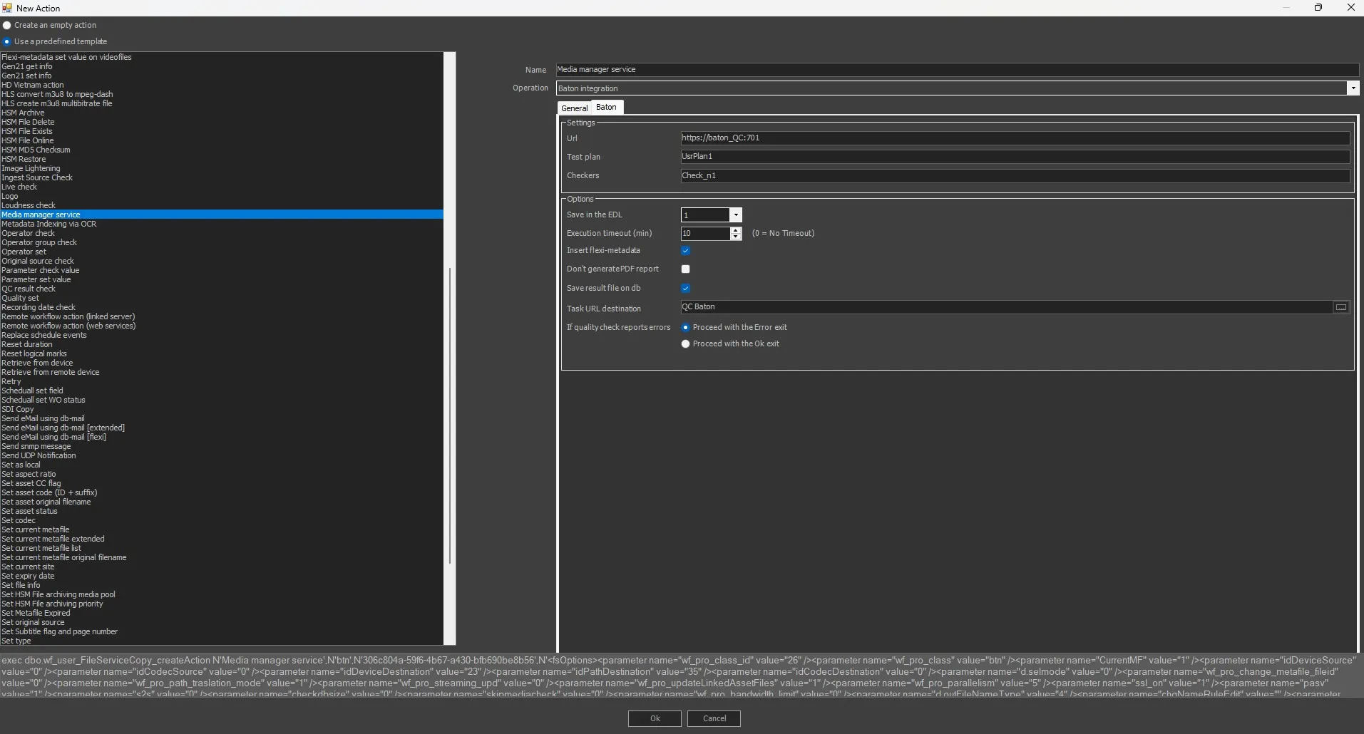 The integration between Etere and Baton is based on the Etere.WF.Baton.exe executable, which allow performing custom verifications against files stored in Etere. The executable has the following implemented parameters: