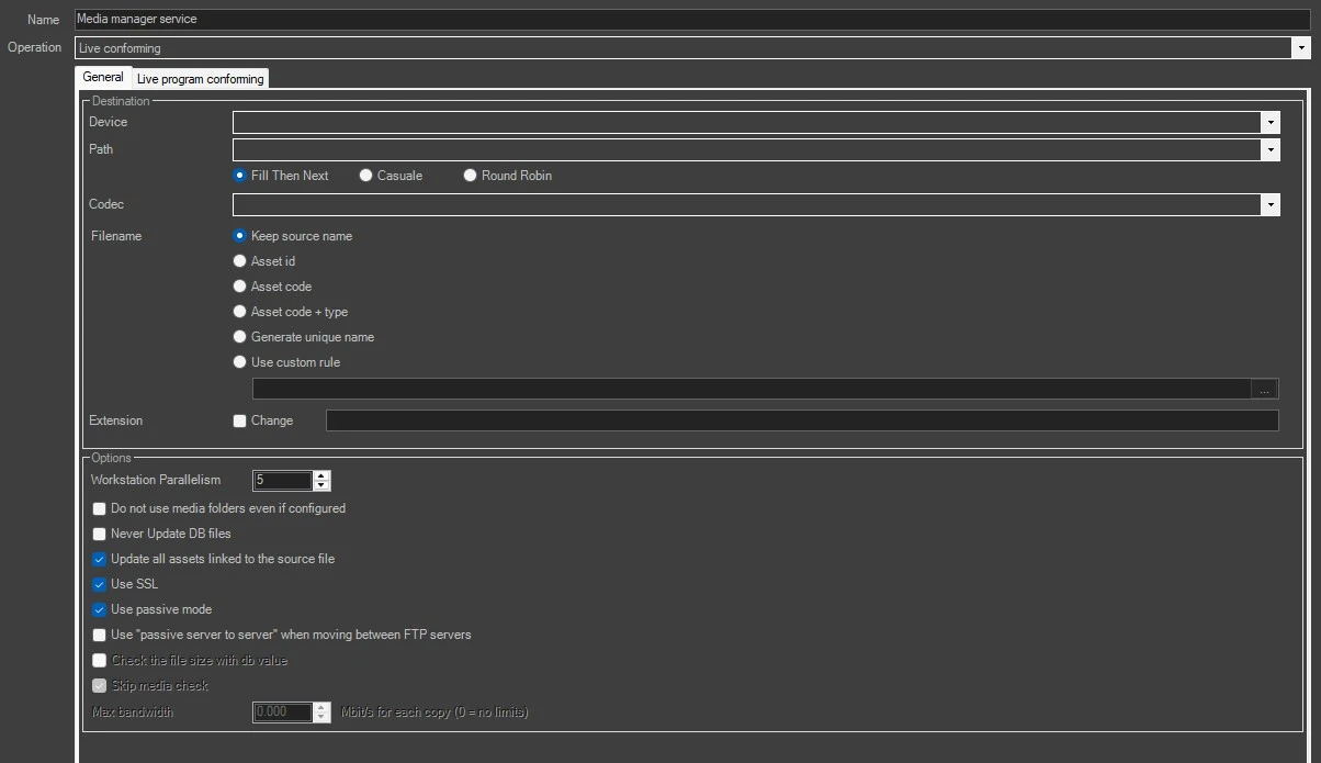 The Live Conforming action allows to transcode in a single file, all the recordings of a broadcasted live asset. This feature works together with Etere Time delay service, which, in this case, is the module responsible to record the live event (see chapter 95.0.0.0 Etere Time Delay Service for more detailed information).