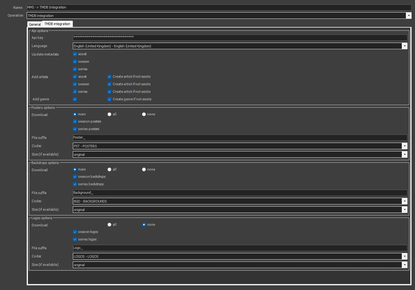 MMS - TMDB Integration is the action used by the ETERE system to integrate The Movie Database (TMDb) API into the ETERE system. This action makes HTTP requests and, based on the JSON responses, imports MOVIE metadata into the asset.