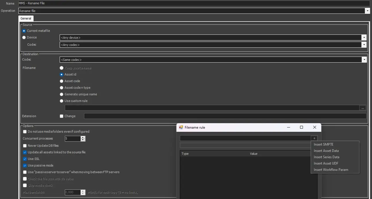 Note: If in the RENAME action, a rule takes the value from a flexi that contains characters not supported by the operating system (such as | \ / : * ") ETERE automatically replaces them with the character - (hyphen).