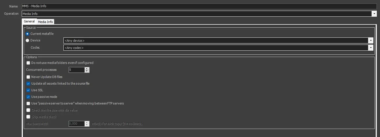 MMS - ETERE MEDIA INFO is the action used by ETERE system to perform the mediainfo action.