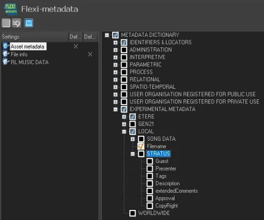 To import additional metadata from Stratus, a prior configuration on the Etere side is required within the Flexi Metadata section, as follows: