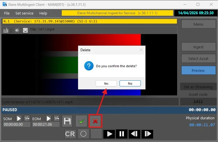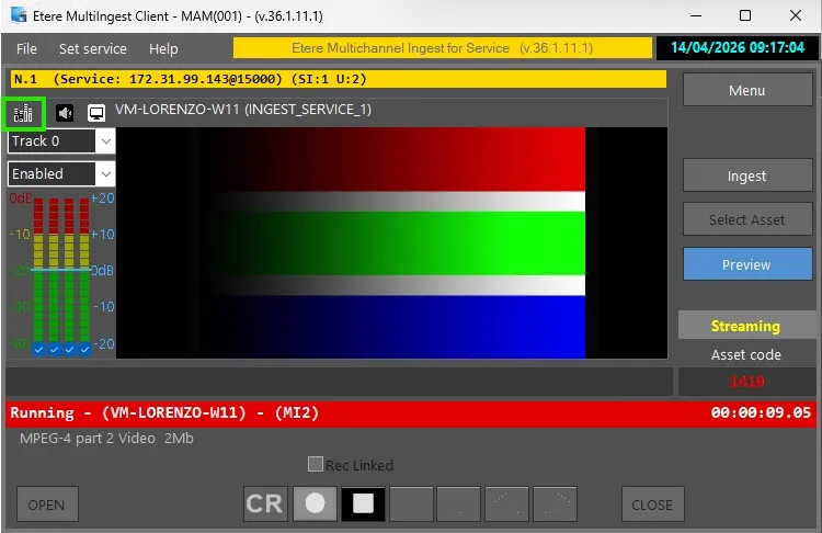 This section describes the complete workflow for performing an ingest operation in Etere Multichannel Ingest, from asset selection to recording control, preview, and post-recording management.