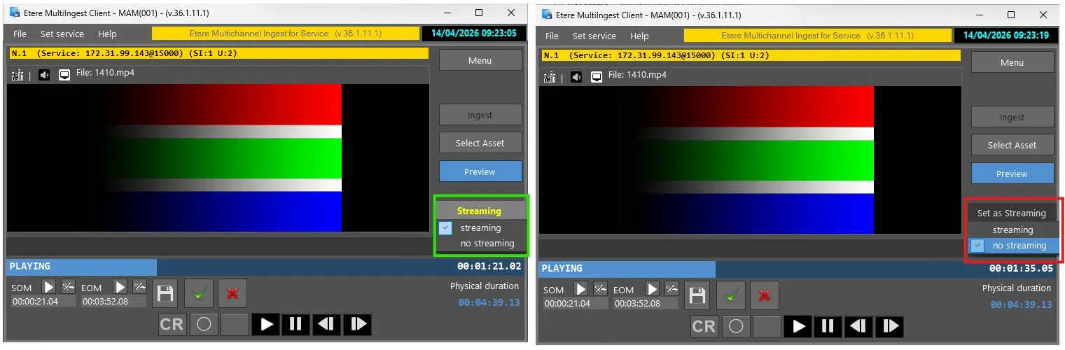 After recording, the file can be immediately previewed using the Multichannel Ingest UI tools, which allow basic editing and navigation.
