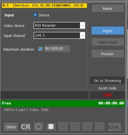 The ingest operation can be terminated using the CLOSE button, which fully releases the channel.